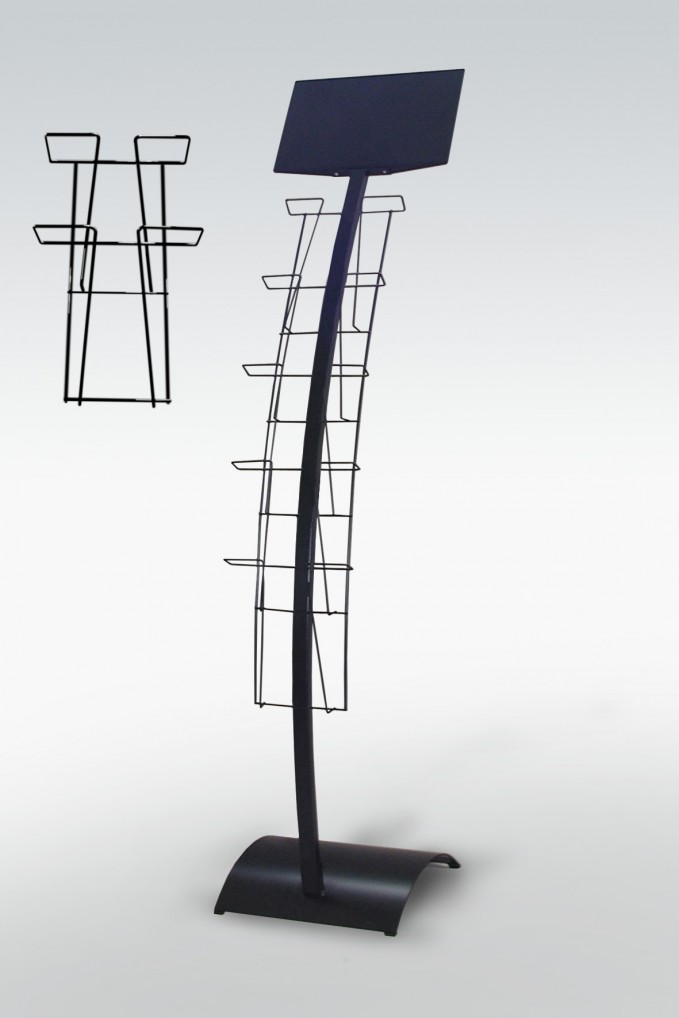 Stojan kovový prohnutý s kapsami na letáky A5